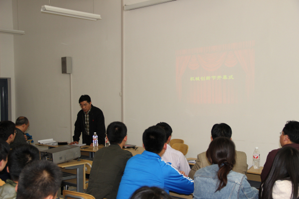 李院长在开幕式中详细说明了机电创新大赛的准备工作及报名须知等事宜,鼓励同学们积极的参与到科技创新中来。随后机械学院团总支书记贺治成介绍了在历届机械创新大赛中的获奖作品以及同学们可以参加的国家级、省级比赛。紧接着,谭继文教授发表讲话,他指出大学生参加科技创新竞赛对提高大学生科技创新意识与能力、促进大学生就业成才具有重要作用,同时提醒在同学们参加科技创新竞赛是比起争取名次更应该注重比赛的过程,并鼓励球王会官网师生在各项活动中再接再厉、勇于创新。