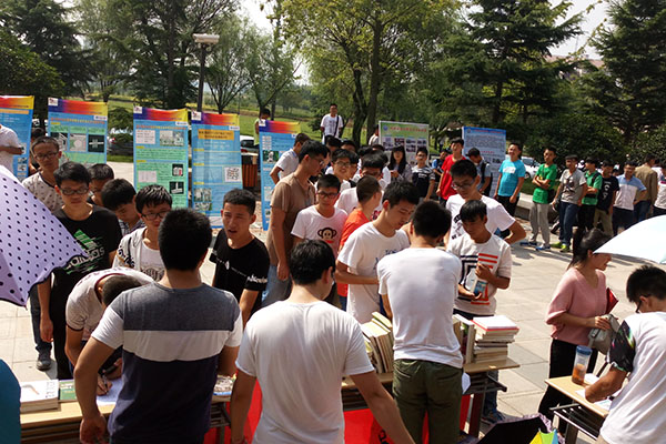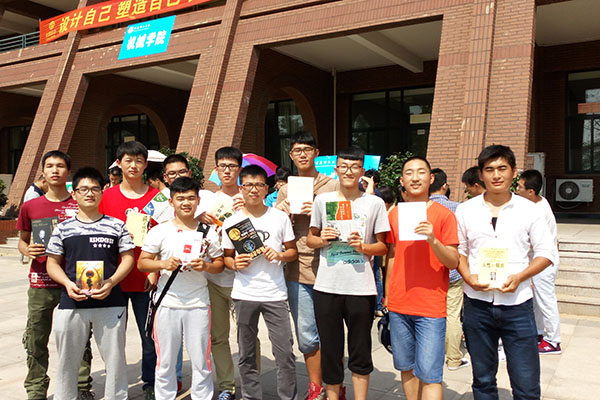 2015年9月6日上午,为迎接新生的到来,机械学院学生会组织举办了“以书会友,薪火相传”书香迎新活动。 上午9时,各班班助带领同学们到教学楼A116门口,排成队伍等待赠书。这次所赠书籍都是大二同学自愿捐出,目的是为了与有相同兴趣的新同学们结交朋友,沟通交流。新生们都很兴奋,都认为他们收到的这大学的第一份礼物很有意义。 活动持续近两个小时,同学们秩序井然的参加并完成了赠书活动。这次“以书会友,薪火相传”书香迎新活动最终圆满结束。活动不仅增强了大二同学和新生之间的交流,更是提醒新同学们大学不是安逸享乐的地方,同学们要始终为了自己的理想不懈的奋斗。 (机械学院 王曼婷)