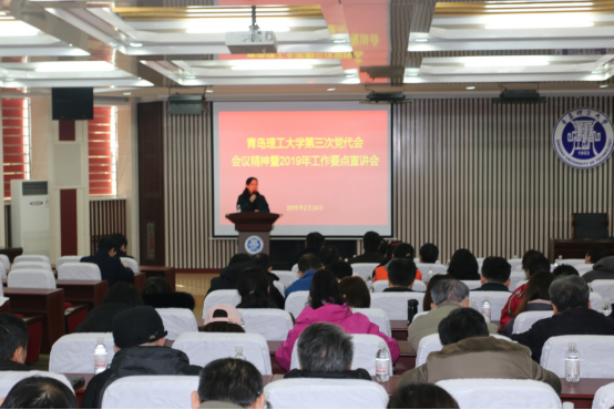谭秀森传达了省委书记刘家义在山东省“担当作为、狠抓落实”工作动员大会上的讲话精神,全面宣讲了学校第三次党代会所确立的“一个总目标”、“三步走部署”、“五大发展战略”和“十大工程”,深入解读了2019年学校党委、行政工作要点。谭秀森指出, 2019年是省委确定的“担当作为、狠抓落实”之年,也是学校全面落实第三次党代会精神、建设特色鲜明的高水平应用研究型大学的开局之年,是学校实现高质量、内涵式发展的攻坚之年。谭秀森强调,围绕建设特色鲜明的高水平应用研究型大学的目标,我们要以习近平新时代中国特色社会主义思想为指导,认真贯彻落实全省“担当作为、狠抓落实”工作动员大会精神,以第三次党代会确立的蓝图为遵循,一要转变作风,扑下身子抓落实;二要鼓足干劲,振奋精神抓落实;三要加强学习,提高本领抓落实;四要创新方法,完善机制抓落实;五要严明纪律,步调一致抓落实。