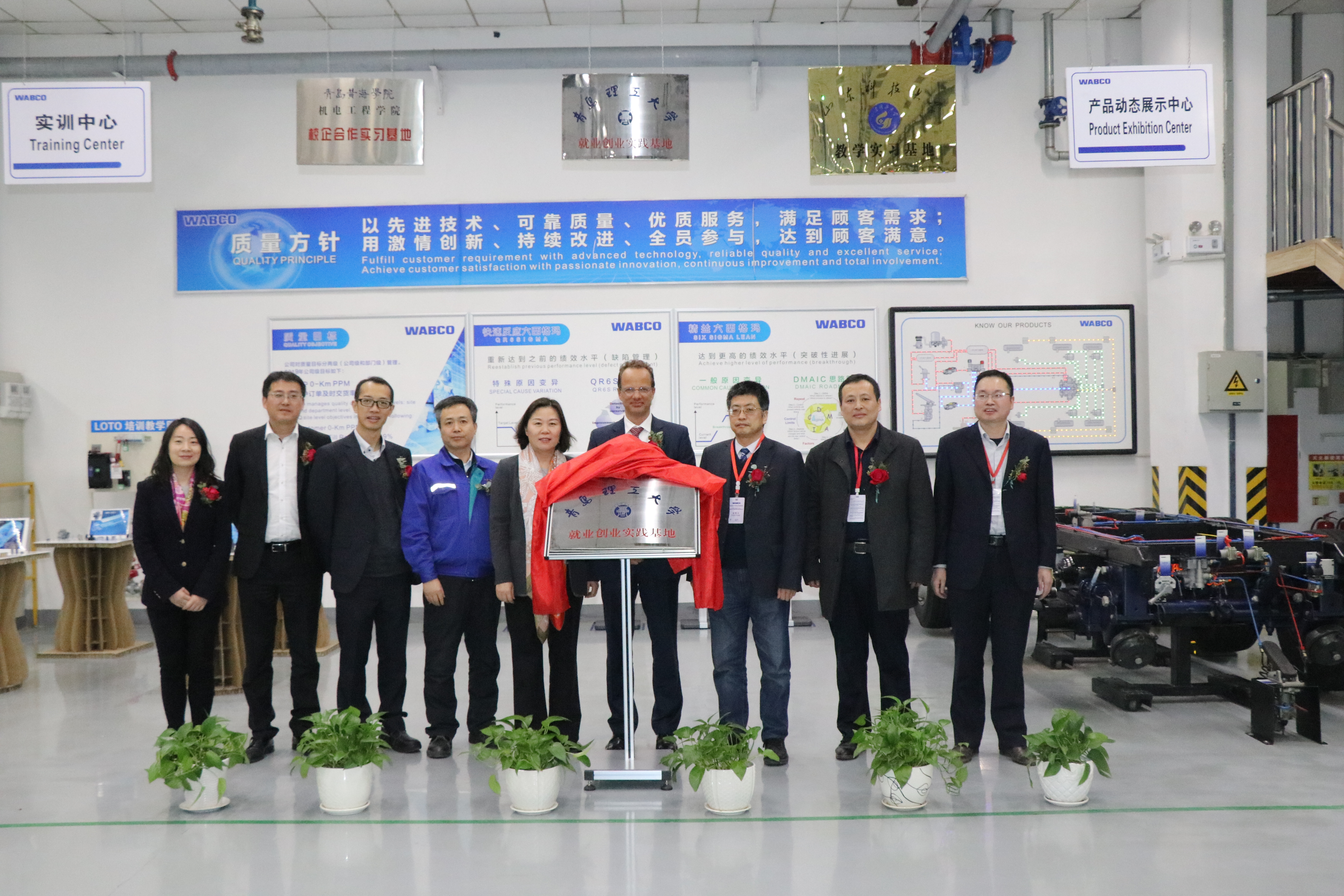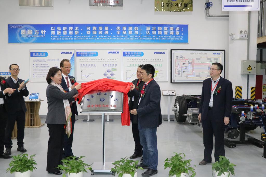 郭峰院长在致辞中指出,希望通过校企合作方式为大学生搭建创业平台,拓宽就业渠道,提高学生实践能力,实现双方互利共赢。相信通过这一平台,可以为双方优势互补、资源共享、相互促进、共同发展发挥积极作用。最后,威伯科集团全球副总裁、亚太区总裁于素杰女士与郭峰院长共同进行揭牌,宣布球王会体育官方网球王会体育官方网实习创新基地正式落户威伯科汽车控制系统(中国)有限公司,双方代表合影留念。