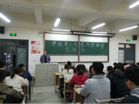 近日,球王会体育官方网在嘉陵江路校区主教学楼B101组织学生党员学习学校第三次党代会精神。党总支副书记林海涛、全院辅导员、在校学生党员参加会议。会议由党总支副书记林海涛主持。