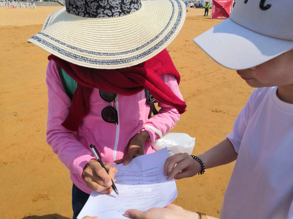 本次活动中支部成员分为两组,分别负责不同区域的垃圾清理和关于海洋保护、垃圾分类的问卷调查、采访工作。活动中,支部成员不怕晒、不怕脏、不怕累,对沙滩各个区域和卫生死角进行了垃圾的清理和分类,减轻环卫工作人员的负担;同时,面向景区的游客和环保工作人员进行了详细的问卷调查和采访,并向游客发放事先准备的垃圾袋和环保倡议书,开展环保宣传活动。