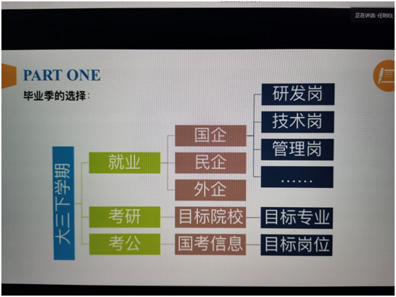 四位嘉宾从自身经验出发结合身边的实例传授经验致力于帮助新生更好的规划自身的职业生涯,为参加的同学们梳理了未来工作和考研的思路,也为他们的未来指明了道路。希望他们的经验能够帮助学生们在未来的就业选择和职业发展道路上披荆斩棘,勇往直前,实现自己的人生价值。(撰稿:朱文超、张建军;审核:林海涛)