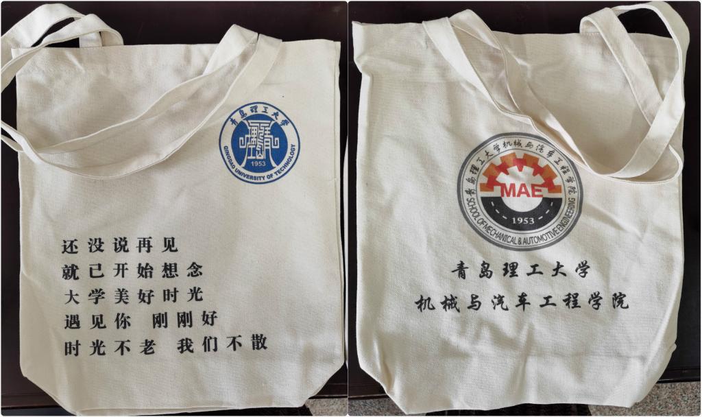 小小帆布袋,满满祝福情。“布”负流年,“袋”走你的大学时光。为给2020届毕业生留下一段难忘的毕业记忆,学院提前筹划、用心制作了毕业礼物,为每位毕业生订做了印有学校、学院标识的帆布袋,希望他们收拾好行囊,秉承百折不挠·刚毅厚重·勇承重载的理工精神,不忘初心,砥砺前行,为社会贡献理工人的一份力量。