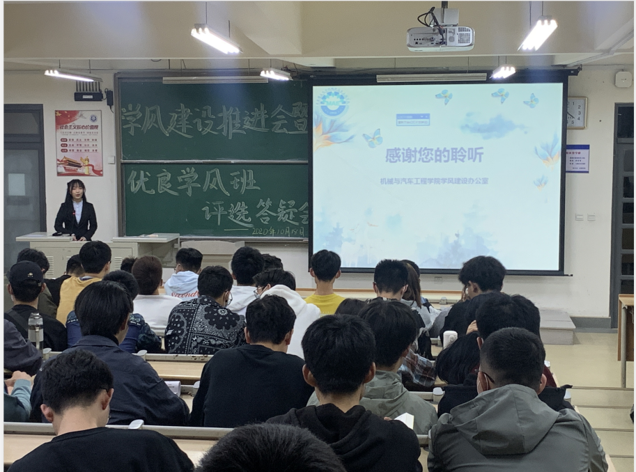 为推动学院优良学风建设,激励进步,让同学们深入了解优良学风班评选要求,球王会体育官方网于10月19日晚在嘉陵江路校区主教学楼B232举办学风建设推进会暨优良学风班评选答疑会,2017级、2018级、2019级各班班长、学习委员等近100人参加此次会议。