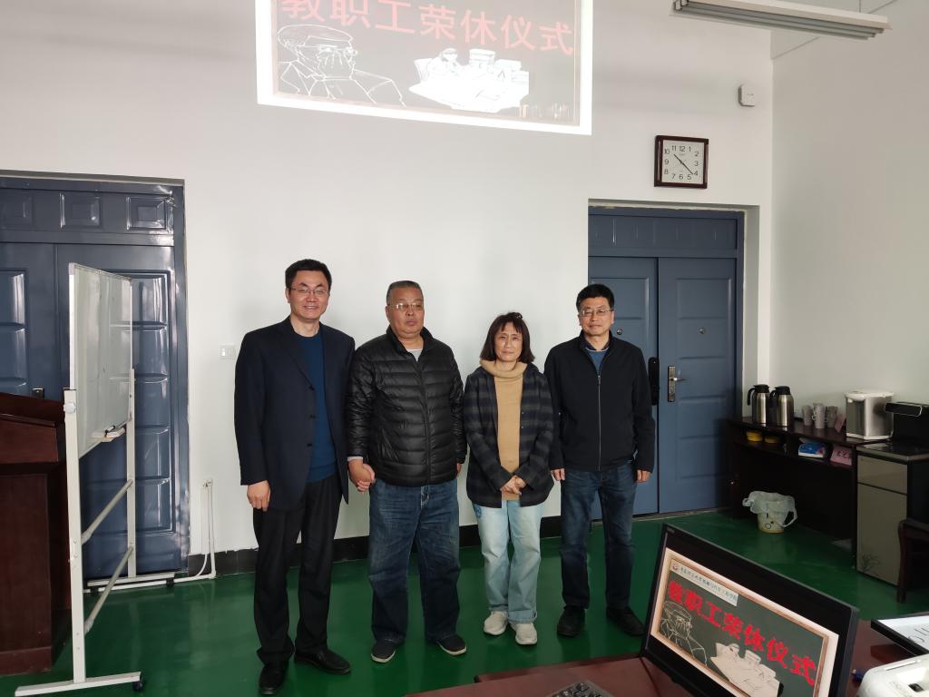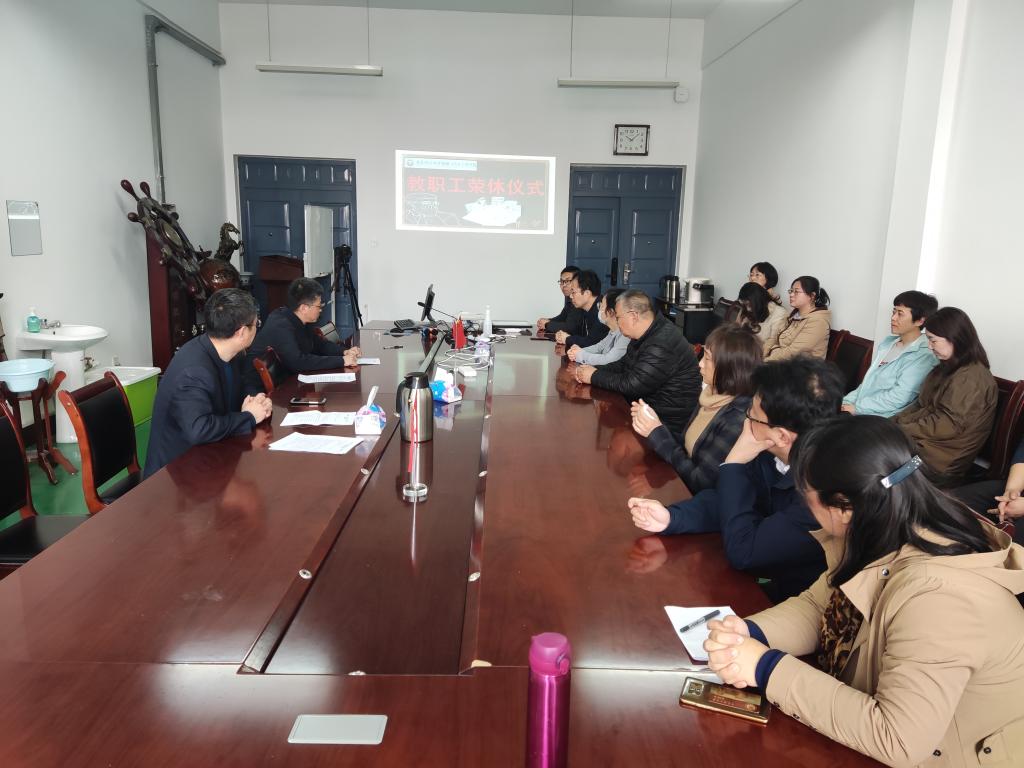 芳菲四月,如诗如画,在这温暖的季节里,球王会体育官方网教职工欢聚一堂,以最真挚的情谊欢送王文、杨国海两位老师光荣退休,学院党委书记李忠晓、院长郭峰、工会代表、相关科室教职工参加荣休仪式。