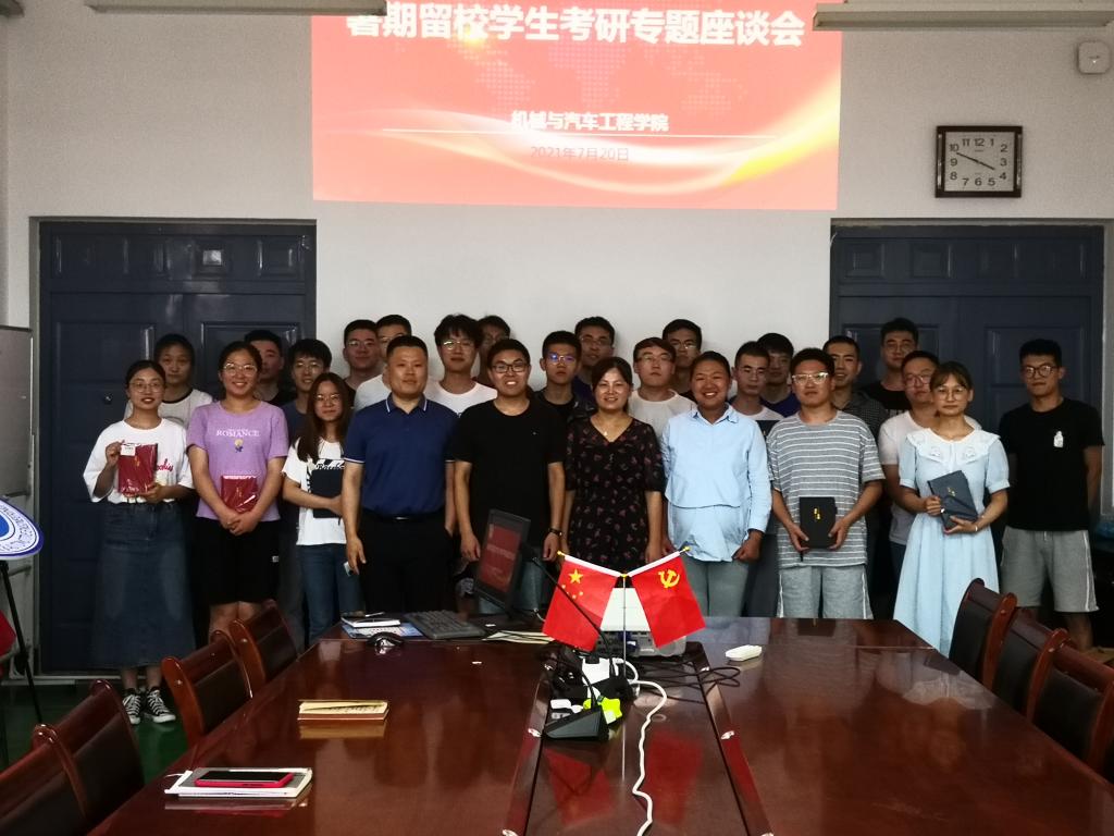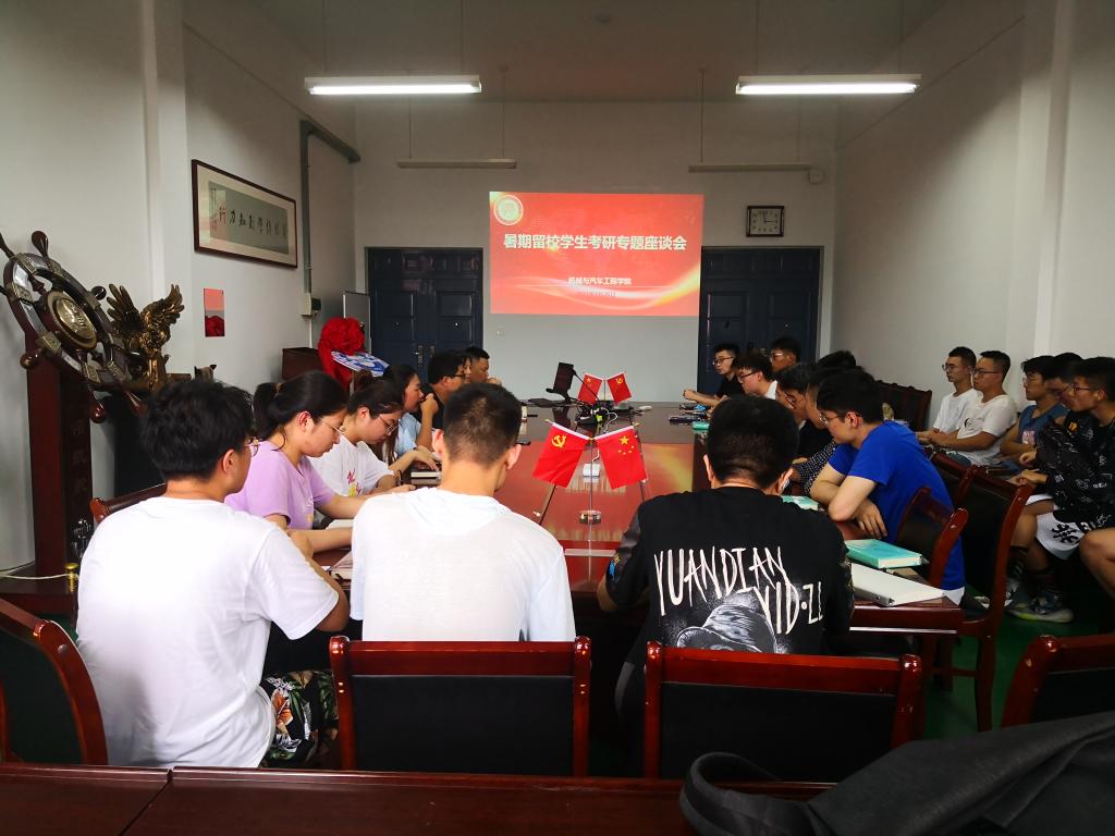 为充分掌握暑假留校考研学生的思想学习动态,增强考研学生信心与决心,营造良好考研氛围,7月20日下午,球王会体育官方网在汽车实验楼408会议室召开暑期留校学生考研专题座谈会。辅导员王成、徐卫晓、李龙、代莉以及暑期留校的考研学生代表30余人参加座谈会。会议由徐卫晓主持。