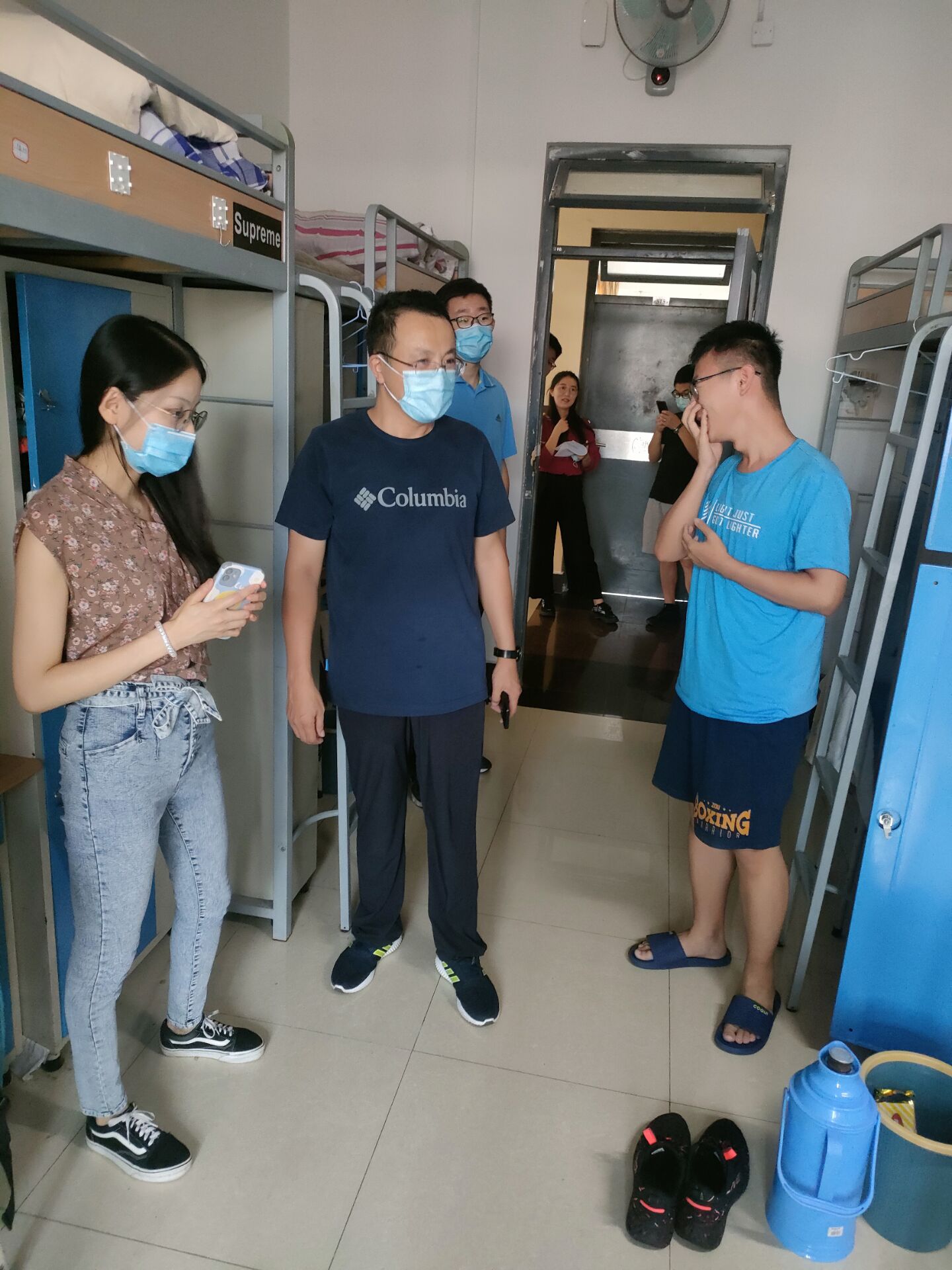 为进一步落实暑假期间学生宿舍安全,增强学生的疫情防控意识,8月3日上午,球王会体育官方网党委副书记、副院长董虎带领各年级辅导员检查走访学生宿舍,开展宿舍安全隐患排查,强化暑期留校学生的疫情防控教育。