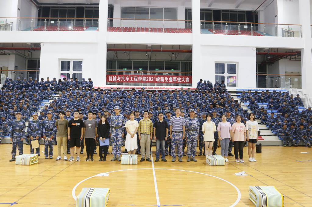 为检验新生军训成果,展现球王会体育官方网学生昂扬向上的精神面貌,9月15日,球王会体育官方网在风雨操场体育馆举办了2021级新生叠军被大赛,学院学工办主任兼团委书记王成,辅导员殷宗华、张翱、 曲乐、 张钦恺参加本次活动。