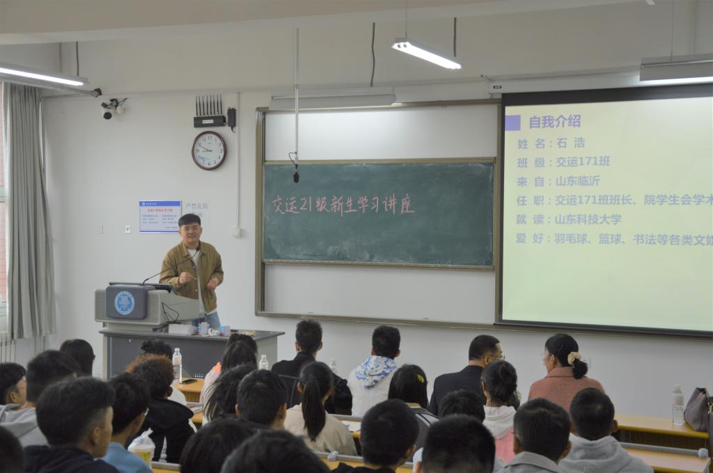 交通运输专业教研室朱永强和刘瑞昌老师结合车联网与5G融合等新形势向新生讲解了智慧交通,老师们勉励同学们要尽快转变角色,明确学习目标,合理规划大学生活。对于老师们的谆谆教诲,同学们纷纷表示对自己的专业有了更深更全面的认识,会结合自身情况,认真学习和规划,争取让自己的大学生活不留遗憾。