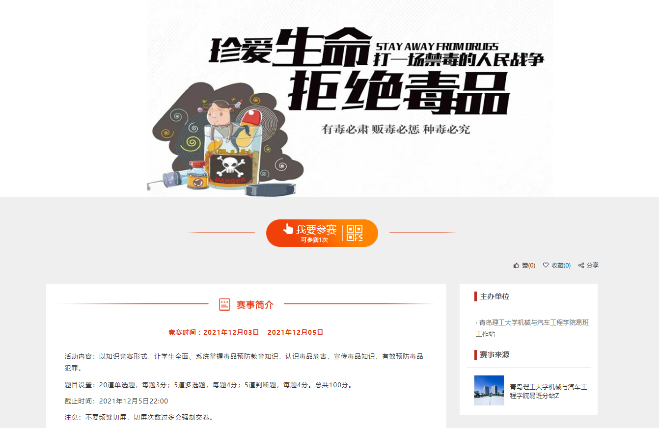 为进一步促进学生掌握禁毒知识,了解毒品危害,球王会体育官方网利用易班平台开展禁毒知识答题活动,充分调动学生学习禁毒知识的积极性与主动性,做到识毒、防毒。