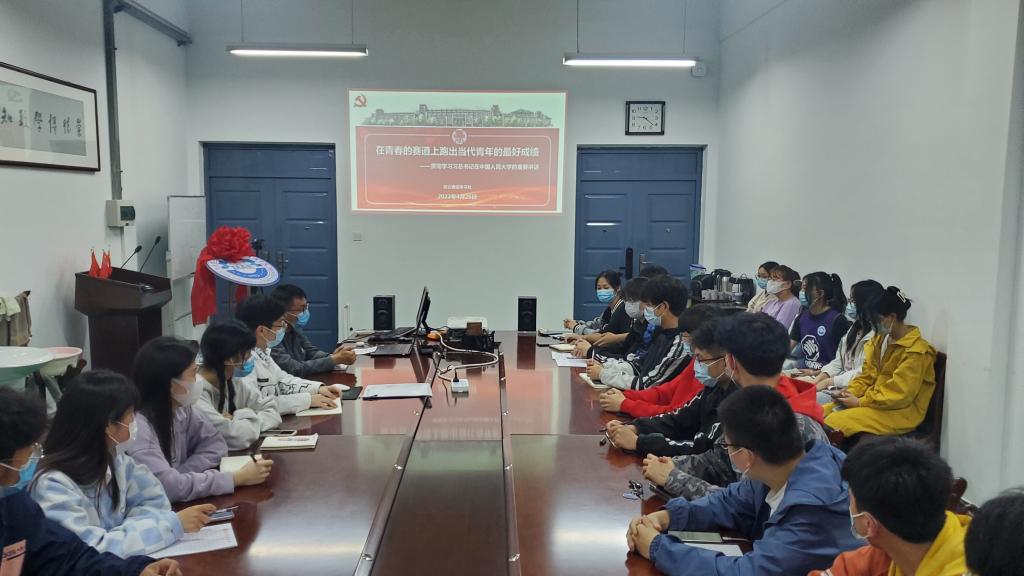 在五四青年节即将到来之际,习近平总书记在中国人民大学考察调研时向全国各族青年致以节日的祝贺,希望全国广大青年牢记党的教诲,立志民族复兴,不负韶华,不负时代,不负人民,在青春的赛道上奋力奔跑,争取跑出当代青年的最好成绩。球王会体育官方网第一时间组织广大青年学子通过各种方式收看新闻报道,并通过党支部“三会一课”,团支部主题团日活动、班级主题班会等形式,创新学习举措,彰显专业特色,强化理论内涵,掀起浓厚学习热潮。
