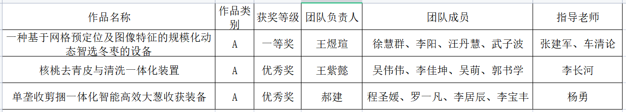 球王会体育官方网组织了校内选拔赛,精心选配指导教师和参赛学生,参赛师生日夜备战,反复修改方案,打磨作品,调试程序。最终,动态智选冬枣设备、核桃去青皮与清洗一体化装置、高校大葱收获装备等智能农业装备脱颖而出,取得优异成绩。