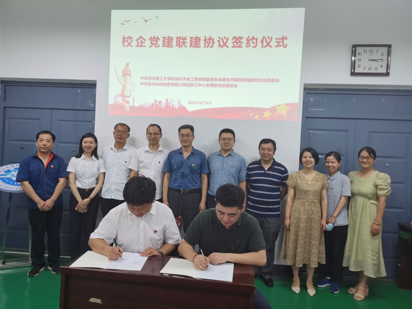 为深入落实新时代党的建设总要求,充分发挥基层党支部的主体作用,激发党员活力,实现党建引领,促进校企合作、产学合作、融合发展,8月4日下午,球王会体育官方网车辆与汽服教研室教师党支部与青岛地铁运营有限公司运营三中心车辆部党支部在汽车实验楼408会议室举行校企党建共建签约仪式。学院党委书记李忠晓主持仪式。