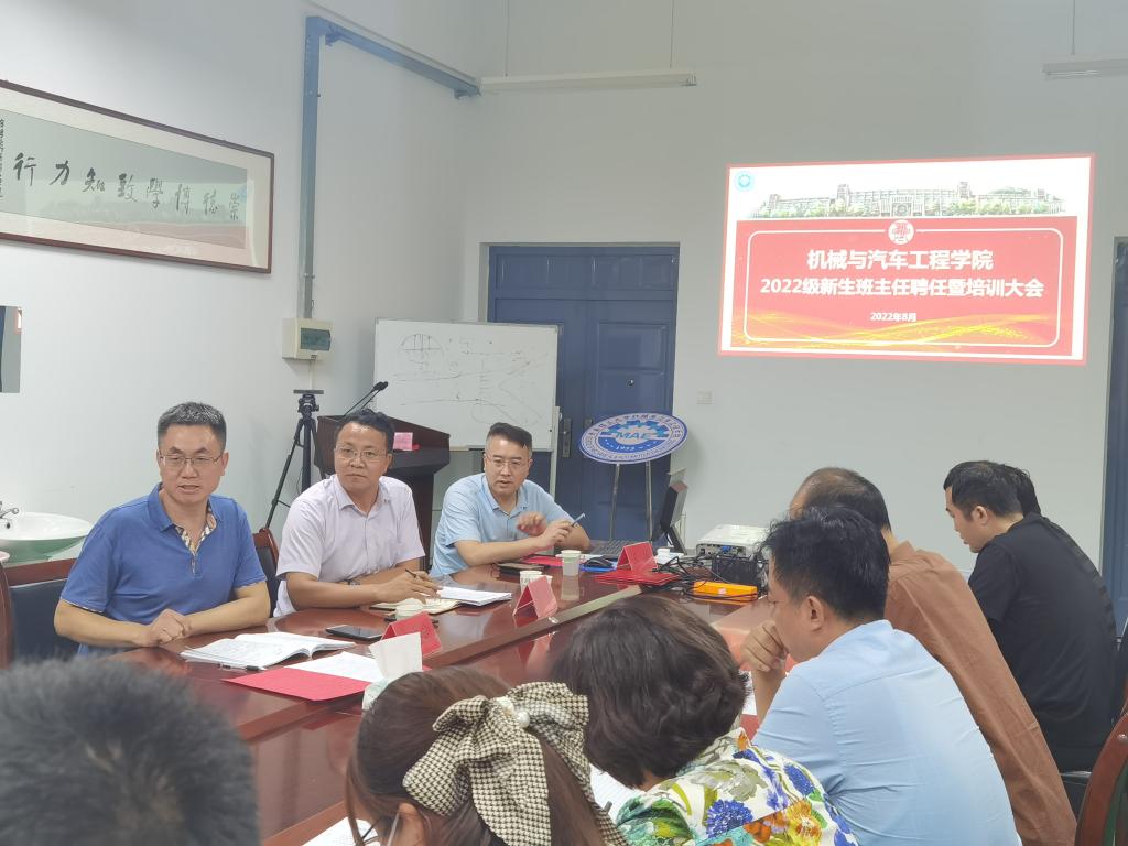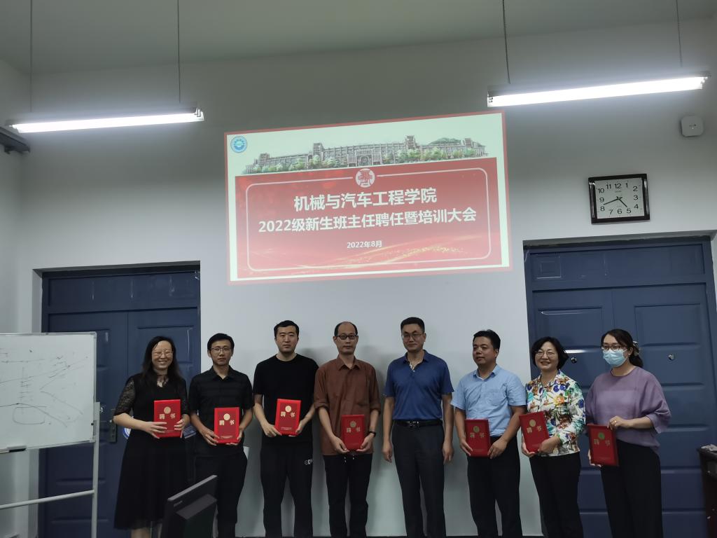 引领遵循,开展新生班主任聘任暨培训大会。8月31日,在汽车实验楼408会议室召开了2022级新生班主任聘任暨培训大会,球王会体育官方网党委书记李忠晓、学生工作处副处长王振、全体新生班主任及新生辅导员参加了会议,会议由学院党委副书记董虎主持。会上,董虎宣读了2022级班主任名单并向班主任传达了新生入学报到、新生入学教育相关工作安排;李忠晓书记为2022级新生班主任颁发聘书;王振副处长结合多年班主任工作经验、辅导案例围绕如何增强班级凝聚力、如何培养学生骨干队伍、如何做学生思想上的引路人、如何成为学生的贴心人等方面进行经验分享。他表示,班主任要牢记立德树人的根本任务,提高政治站位,用真心、细心、热心、耐心做好学生教育管理服务工作,努力做学生成长的引路者、陪伴者、助力者。李忠晓书记对班主任提出了三点希望:一是结合新时代学生思想实际,注重加强思想政治教育和咨询服务,帮助新生扣好人生第一粒扣子;二是发挥专业引领作用,坚持加强学风建设,积极创建优良学风班,推进校园精神文明建设。三是加强沟通协调,深化家校联系,争做大学生健康成长的指导者和引路人。他表示,辅导员、班主任是学生学习和生活的领航者、帮助者,要在实际工作中切实做到“用心”、“用情”、“用智”。