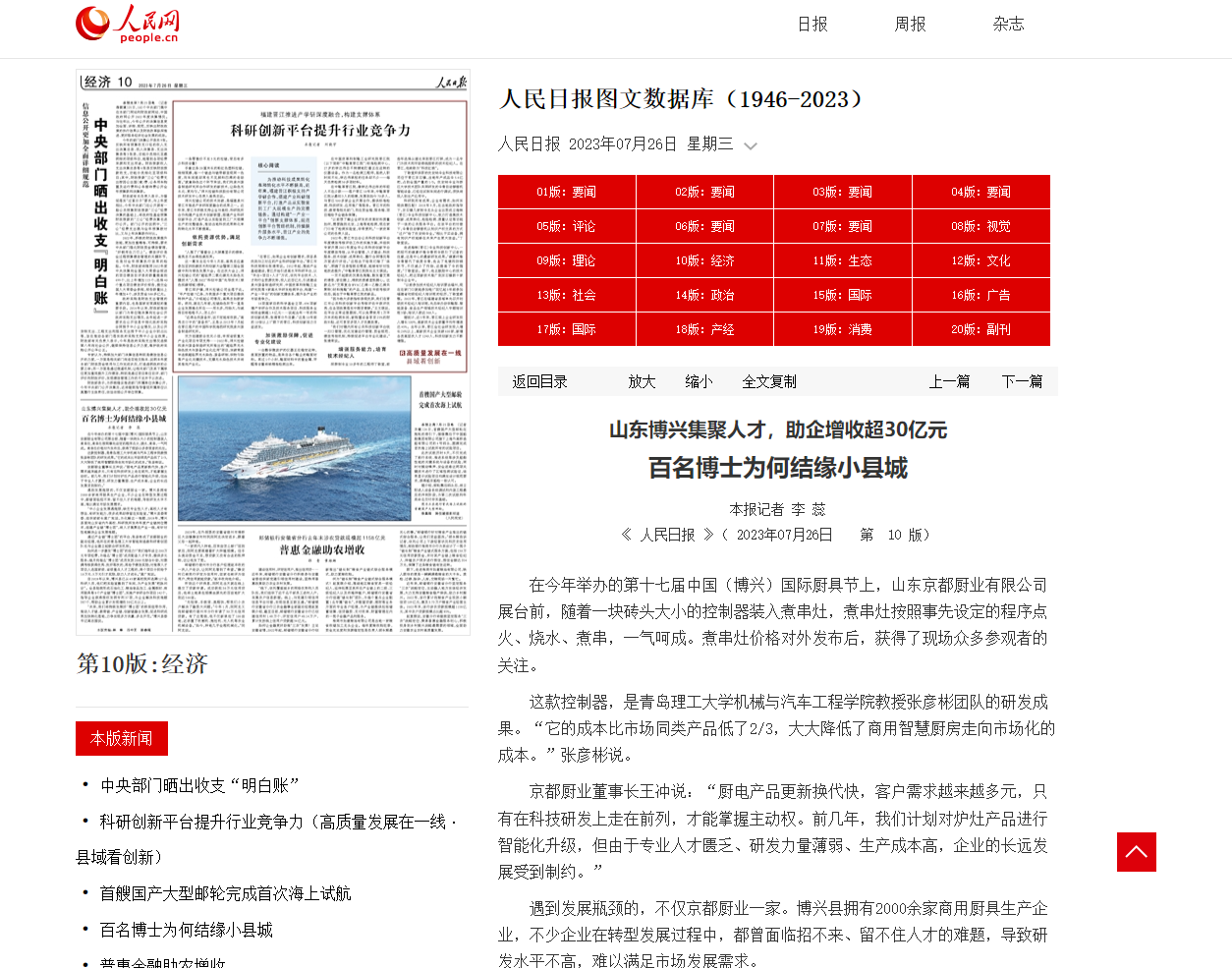 人民日报:山东博兴集聚人才,助企增收超30亿元 百名博士为何结缘小县城