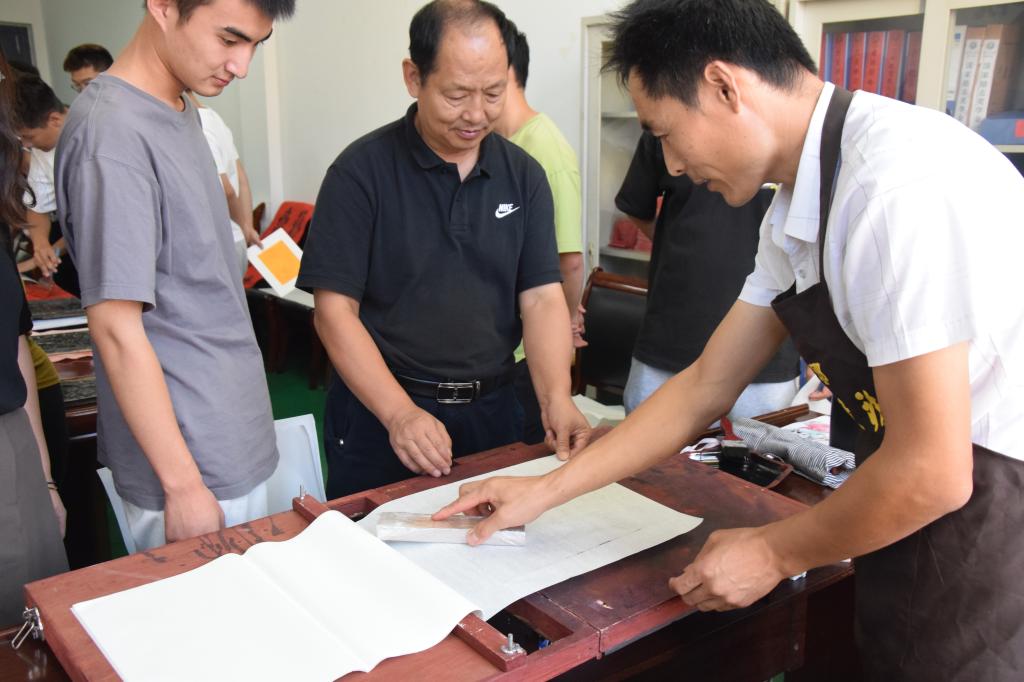 李相夺用通俗易懂又生动活泼的语言,向师生讲解了木版年画的种类、文化内涵、制作工具和制作过程等相关知识,重点介绍了其代表作《九龙图》,在这幅图中他将传统年画中融入现代生活、时尚元素,给予年画新的生命力,实现了年画的创新发展。随后,李相夺以自己刻制的木板为例,向师生展示了木版年画印制技艺,并让师生亲自体验印制版画的制作流程,师生们纷纷挑选自己喜欢的图案,在老师的耐心指导下,雕版刷墨、白纸拓印、水彩上色,亲自印制了一张又一张年画作品。