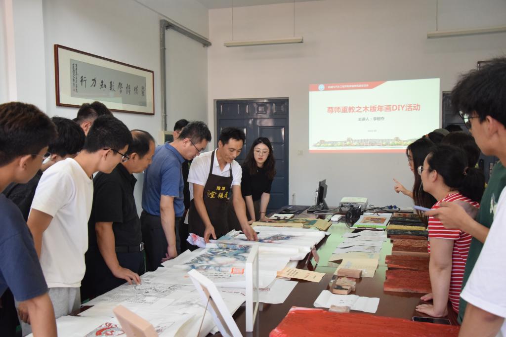 为了持续强化师德师风建设,团结凝聚广大教师更好担负起立德树人根本任务,加强师生互动,弘扬传统文化,球王会体育官方网于9月20日下午在汽车实验楼408会议室举办“尊师重教之木版年画DIY”活动,将传统木板年画工艺与师德师风建设结合起来,邀请木板年画传承人李相夺为师生讲授木版年画知识,带领师生体验木版年画的制作过程。学院党委书记李忠晓、二十余名教师和学生参加活动。