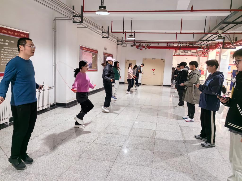 在风雨操场,大家欢聚一堂、笑声不断。踢毽子、跳绳、定点投篮,老师们纷纷拿出“看家本领”,活力四射、风采飞扬,大家互相加油、彼此鼓劲,场面十分热闹。刘晓玲老师表示:“每年的今天都很开心,大家聚在一起参加活动,既锻炼了身体,又增进了感情,明年还要参加。”