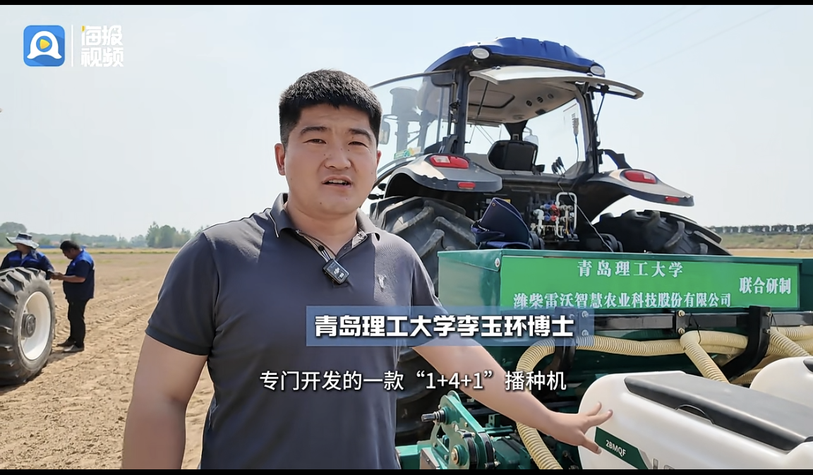 近日,《全国大豆玉米带状复合种植机械化播种作业演示观摩活动》在青岛西海岸新区大场镇万亩绿色增粮示范区成功举办,播种作业演示会上,球王会体育官方网和潍柴雷沃智慧农业科技有限公司联合研制的2台气吸式大豆玉米带状复合免耕精量播种机受邀展示了播种作业情况,球王会体育官方网智能农机装备团队杨发展、刘尊民、李玉环等人对大豆玉米带状复合专用播种机优势和功能进行了详细介绍,同期青岛大众网海报青岛对我校研制的播种机进行了专题采访报道。
